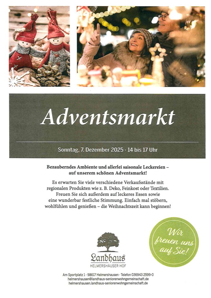 Adventsmarkt im Landhaus „Helmershäuser Hof“ in Helmershausen, Sonntag 07.12.25, von 14 – 17 Uhr