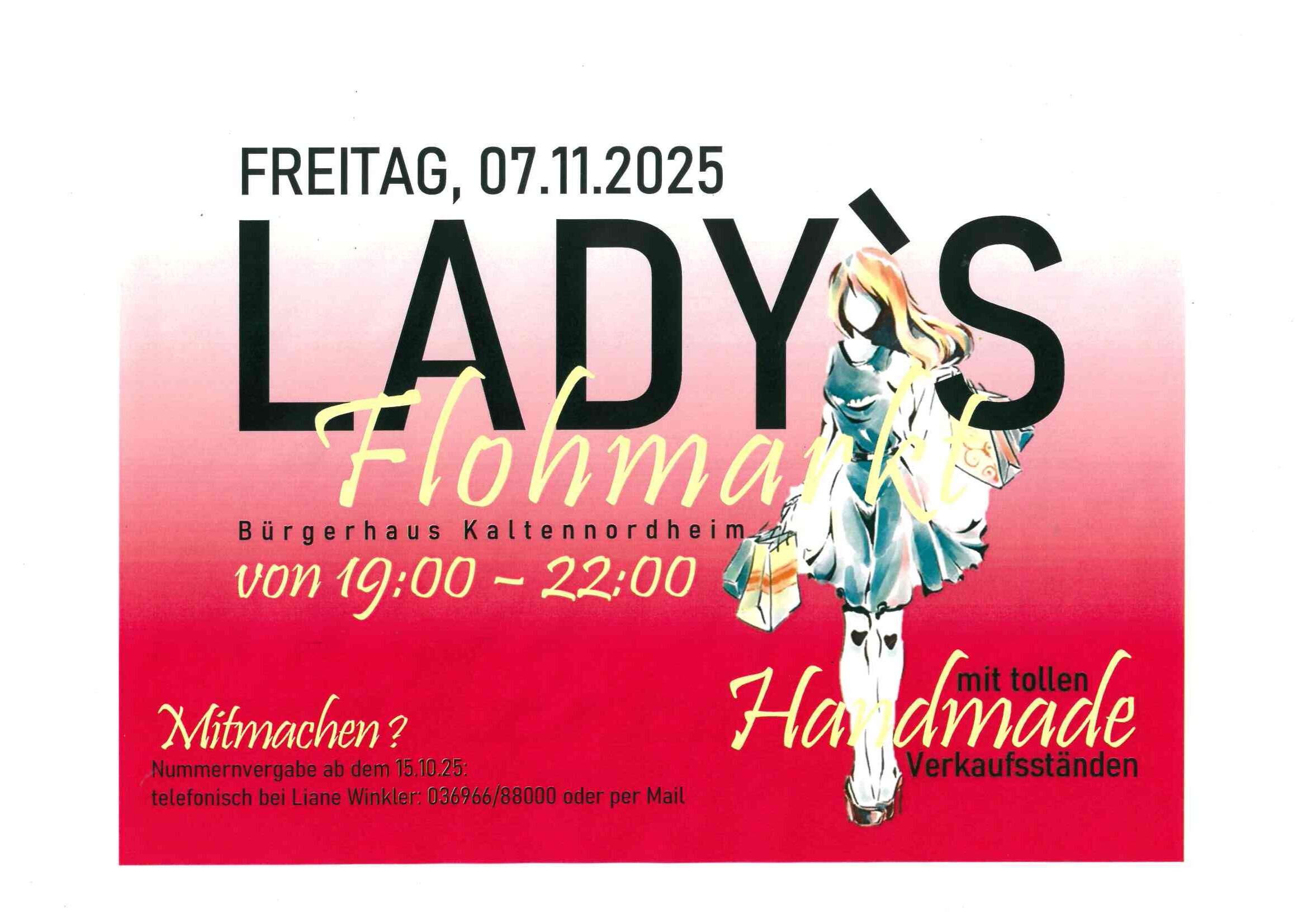 Ladysflohmarkt am 07.11.2025 im Bürgerhaus Kaltennordheim SuchenSuchenNeueste BeiträgeAb Montag, 27.10.2025, Wegebauarbeiten im „Stätteweg“ Kaltennordheim Ferienangebote der Caritas für 2026 Die digitale Rentenübersicht Information zur Umsetzung von Gehölzpflanzungen am Goldbach zwischen Kaltenlengsfeld und Kaltennordheim ab Ende Oktober/Anfang November 2025 Familienfonds des Landkreises Schmalkalden-Meiningen Neueste KommentareEs sind keine Kommentare vorhanden.