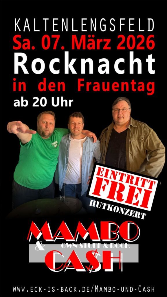 Am Samstag, den 7. März 2026, wird das Dorfgemeinschaftshaus in Kaltenlengsfeld zum Beben gebracht: Mambo & Cash stürmen die Bühne! Der Feuerwehrverein Kaltenlengsfeld lädt ab 20 Uhr herzlich zur Rocknacht in den Frauentag ein.