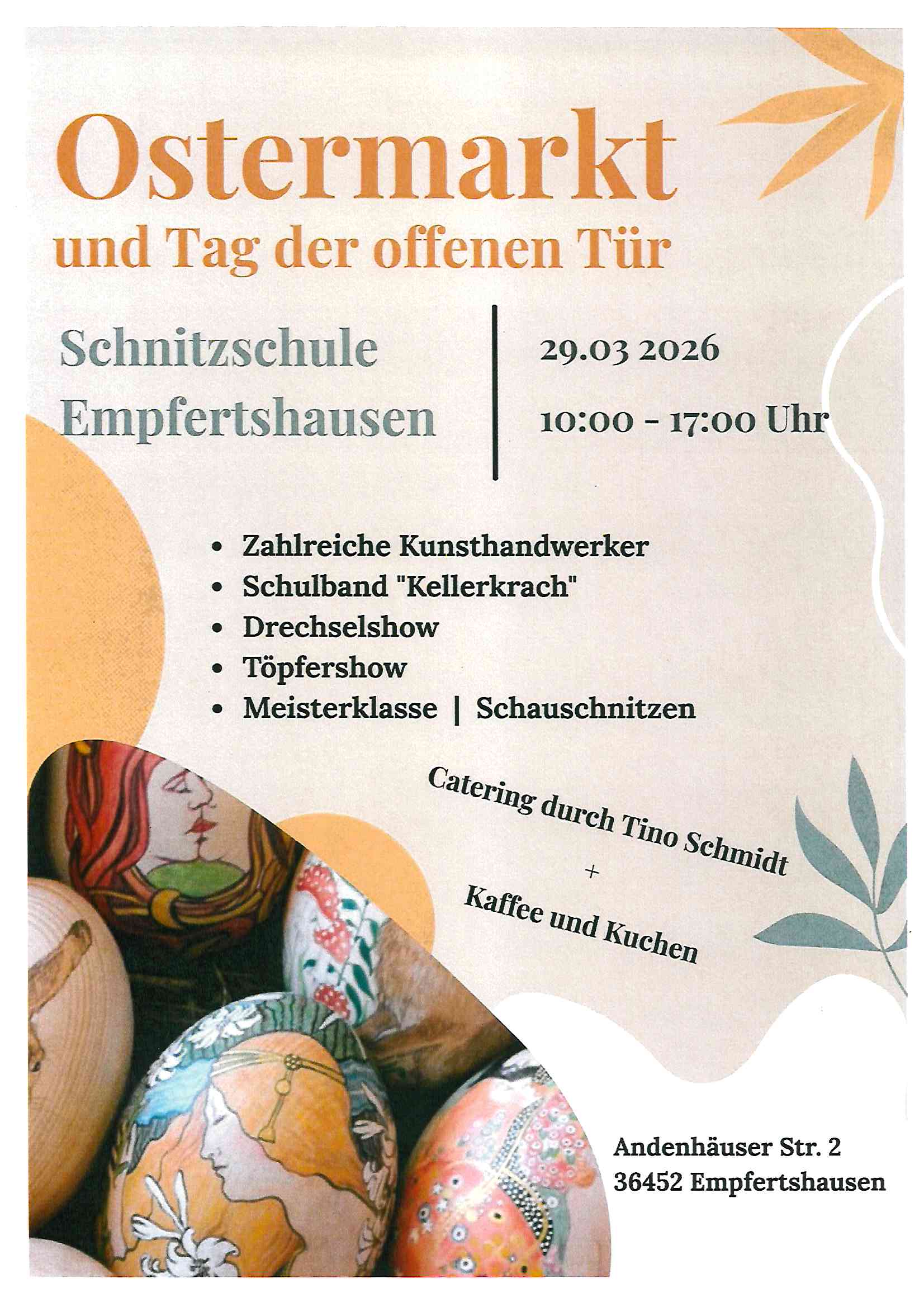Ostermarkt und Tag der offenen Tür am 29.03.2026, 10.00-17.00 Uhr, in der Schnitzschule Empfertshausen