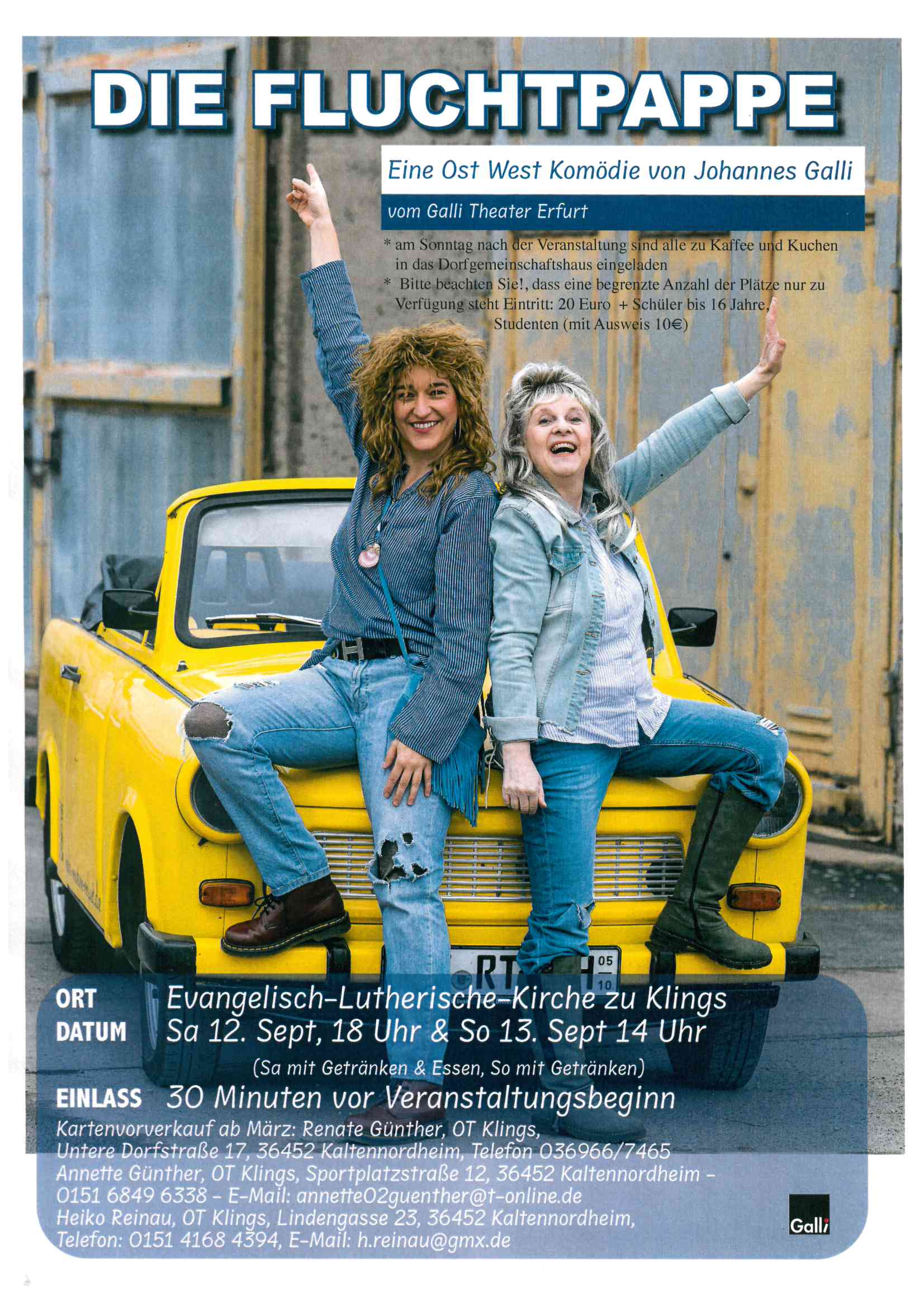 „Die Fluchtpappe“ – eine Komödie vom Galli Theater Erfurt – am 12.+13.09.2026 in der Kirche zu Klings